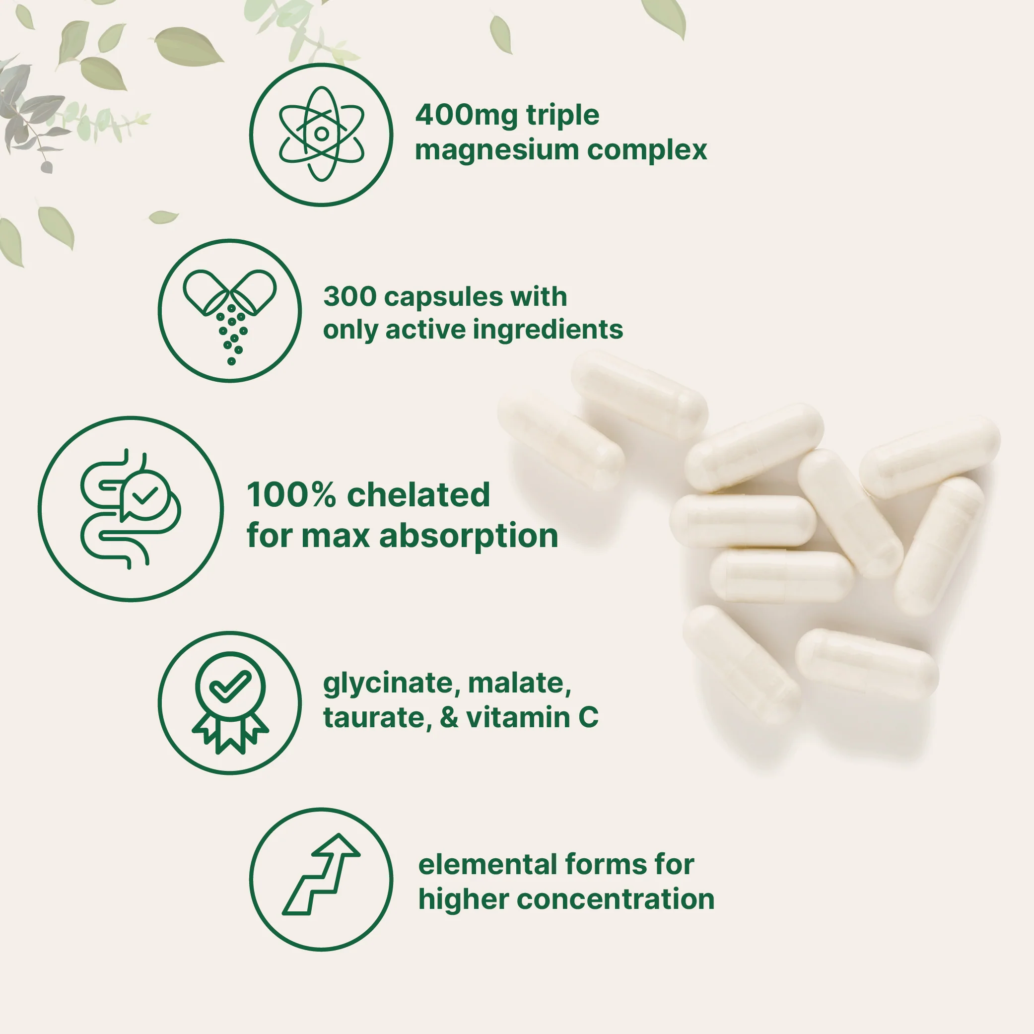 Micro Ingredients Triple Magnesium Complex 400mg Per Serving, 300 Capsules