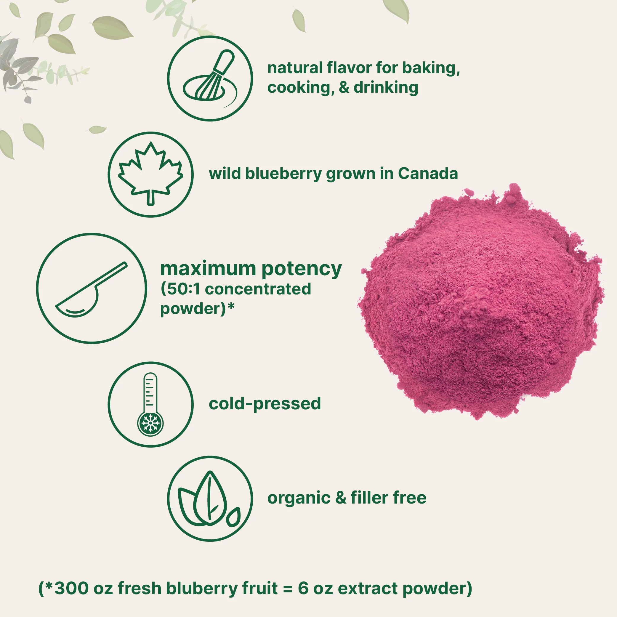 A premium USDA organic, 50:1 wild-grown blueberry extract powder, offering a concentrated dose of natural antioxidants and nutrients to support daily wellness.